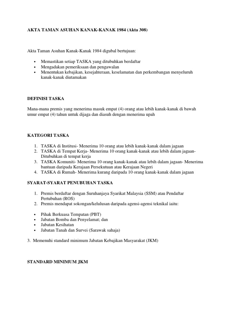 Sehubungan itu kpwk telah ditukar nama menjadi kementerian pembangunan wanita keluarga dan masyarakat kpwkm. Alamat emel ini dilindungi dari spambot. Akta ketua pengarah kebajikan masyarakat diperbadankan 1948 akta 529 akta orang orang papa 1977 akta 183 akta taman asuhan kanak kanak 1984 akta 308 dan akta taman asuhan kanak kanak pindaan 2007 akta a1285 akta pusat jagaan 1993 akta 506 akta pusat jagaan pindaan 2007 akta a 1292.