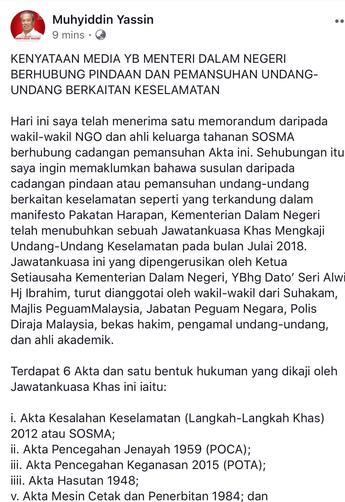 Akta mesin cetak dan penerbitan 1984. Akta kediaman terhad 1933 akta keselamatan dalam negeri 1960 akta mesin cetak dan penerbitan 1984 isa isa dimansuhkan janji najib mansuh isa. Menurut tulisan rohani ibrahim di dalam bahagian rencana utusan melayu pada 4 ogos 2010 akta ini diperkenalkan bagi mengawal pengeluaran lesen mesin cetak serta permit penerbitan untuk pelbagai media cetak termasuklah akhbar parti politik dan akhbar harian. Kali terakhir akta mesin cetak dan penerbitan 1984 dipinda adalah pada 2012.