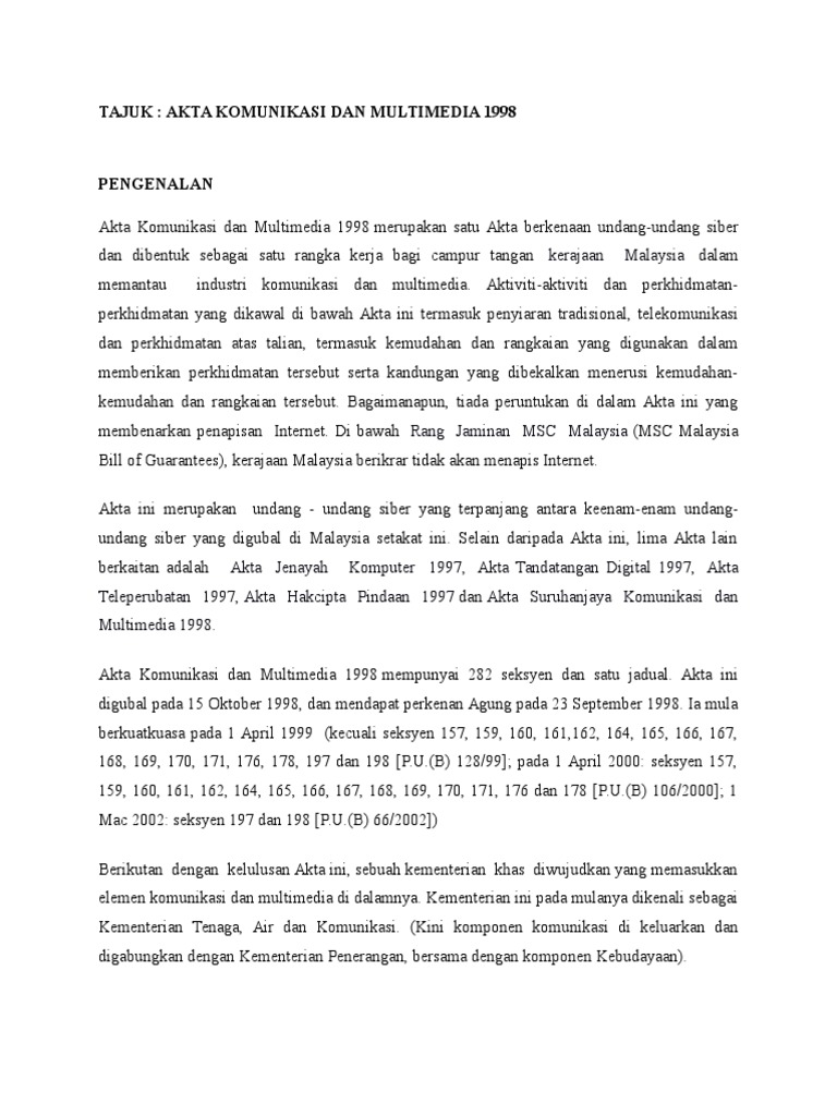 Dalam akta ini. Digital signature act 1997 computer crimes act 1997 telemedicine act 1997. Akta ini berkuatkuasa pada 1 oktober 1998.