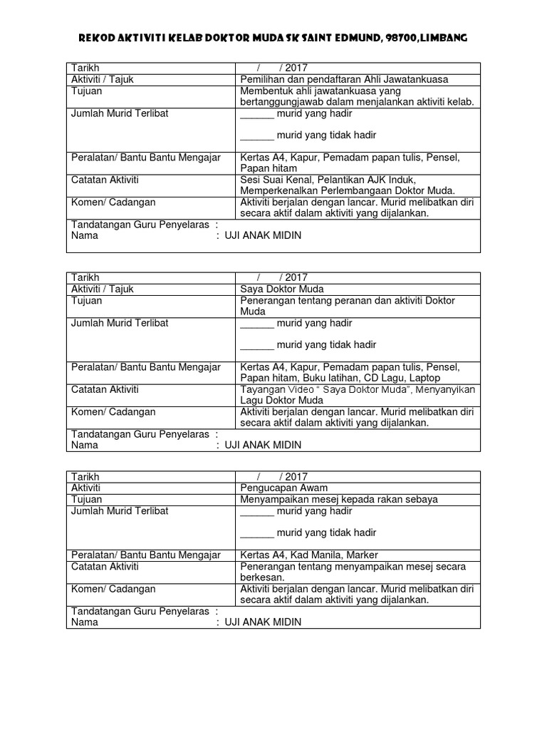 Di sk sementa kelab doktor muda telah ditubuhkan pada tahun 2005 dengan ahli seramai 15 orang. Latihan amali ahli ahli kdm. Kelab doktor muda bil bil tarikh program aktiviti strategi perlaksanaan 1.