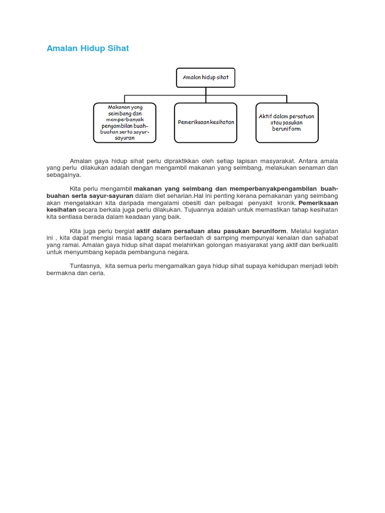 Tulis ulasan tentang amalan gaya hidup sihat tersebut dalam bentuk perenggan. Selain itu kita haruslah bersenam sekurang kurangnya 3 5 kali kerana ia dapat membantu badan mengeluarkan peluh dan melancarkan peredaran darah. Menjaga pemakanan seharian antara amalan gaya hidup sihat ialah menjaga pemakanan seharian kita.