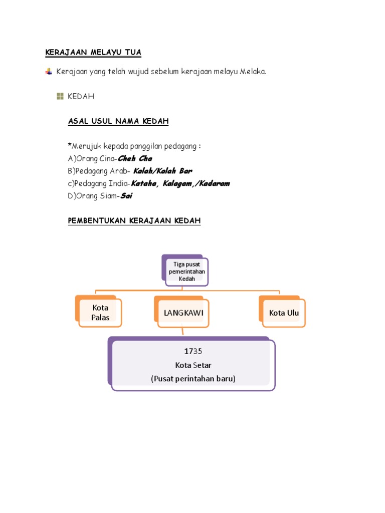 Asal usul nama kedah. Merong mahawangsa kemudiannya memeluk islam dan menggunakan nama sultan muzaffar shah. Orang cina panggil kedah cheh cha. Nama purba kedah ialah kadaram atau kalagam.