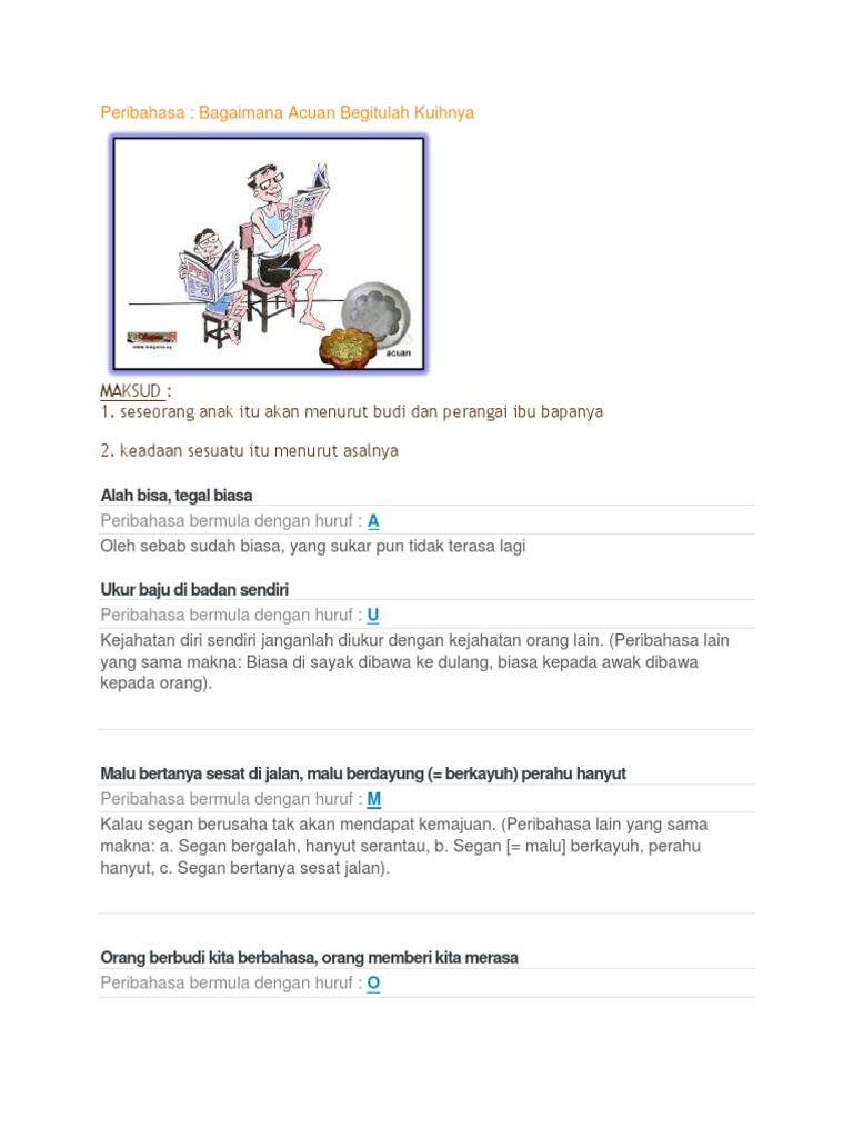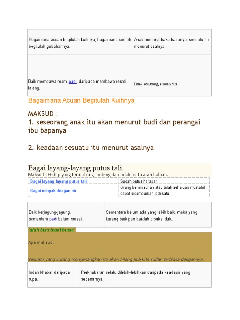 Bagaimana acuan begitulah kuihnya. Seseorang anak itu akan menurut budi dan perangai ibu bapanya b. Bagaimana bunyi gendang begitulah tarinya.