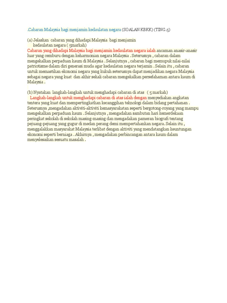 Kedaulatan negara ialah suatu yang perlu dijaga dan dikekalkan. Kbat cabaran mengekalkan kedaulatan negara 6. Negara yang mengamalkan perpaduan dapat mencapai kemajuan dengan mudah serta tidak mudah ditakluki kuasa asing.