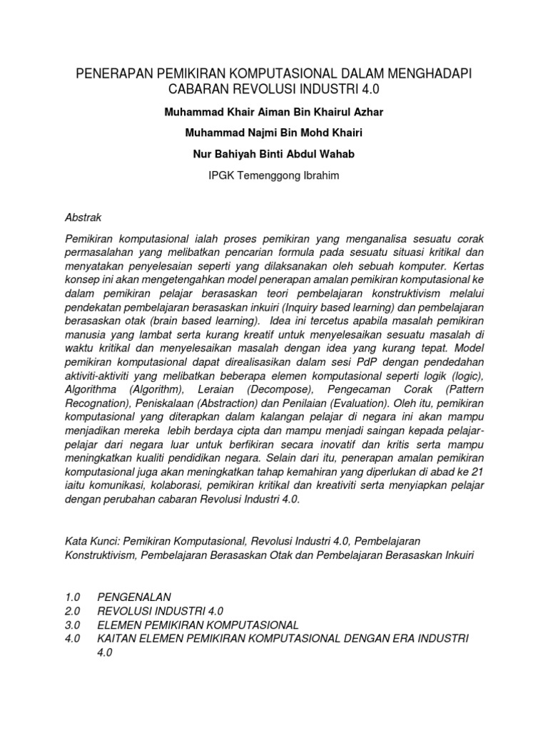 Rashid 94 maklumat pada zamannya noor shakirah 2006. Bangi 3 januari 2019 revolusi industri 4 0 yang melibatkan teknologi digital telah memberi cabaran baru kepada semua sektor di seluruh dunia termasuklah bidang pengajian islam. Inisiatif dan peruntukan bajet 2018 jelas bertepatan revolusi industri 4 0 menjamin kelestarian persekitaran dan membuka harapan gagasan tn50 dalam kerangka maqasid syariah.