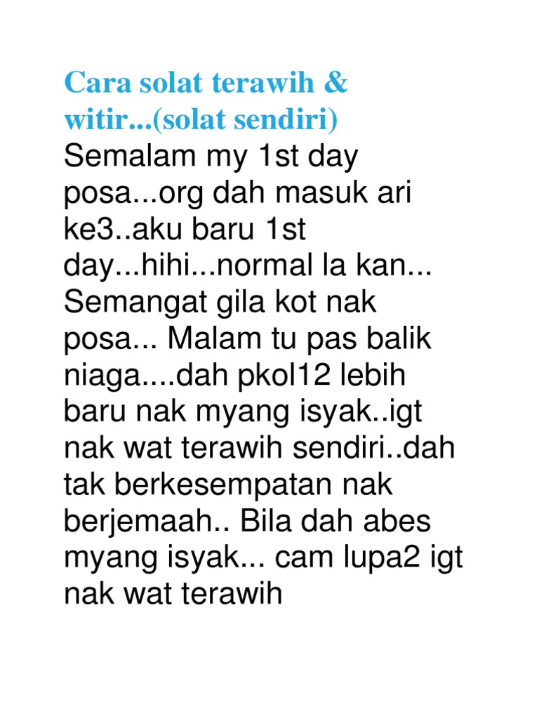 Musim pkp akibat coronavirus covid 19 ini kita semua tidak dibenarkan solat terawih di masjid atau surau macam selalu. Mengucap takbir saat takbiratul ihram sambil niat di dalam hati. Panduan cara solat sunat tarawih ini juga dipermudahkan dengan ejaan rumi untuk membantu sesiapa yang mengalami kesukaran membaca tulisan arab.