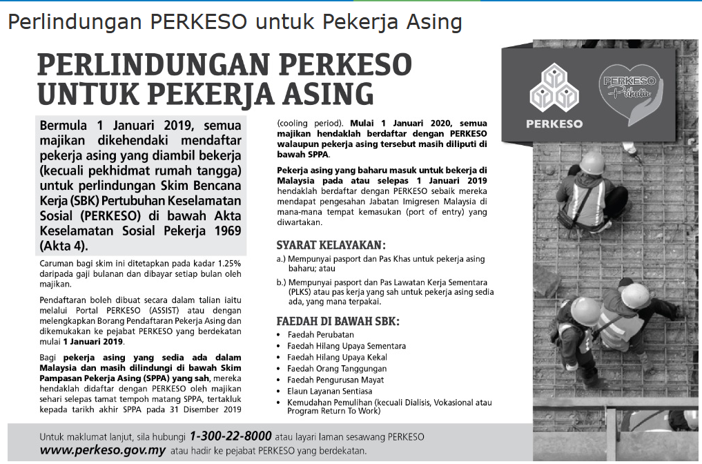 Sebelum ini pekerja warga asing dilindungi insurans mereka di bawah jabatan tenaga kerja jtk dan sejak januari 2019 perkeso mula mengambil alih peranan caruman katanya. Ujarnya menerusi caruman itu pekerja asing akan mendapat manfaat sama seperti pekerja tempatan. Jemaah rayuan keselamatan sosial jrks perlindungan.