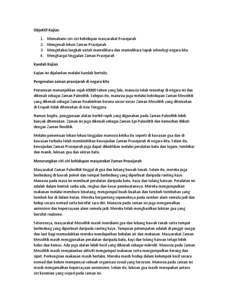 Ciri ciri kehidupan masyarakat zaman prasejarah di malaysia. Ciri ciri kehidupan manusia zaman prasejarah відкрийте вікно автор nurulinsana94. Kegiatan dan peralatan adalah seperti yang berikut. 1 zaman prasejarah dikatakan sebagai sebahagian masa silam manusia yang tidak dicatatkan dalam bentuk tulisan iaitu sebelum sejarah ataupun sejarah silam manusia sebelum wujudnya rekod rekod bertulis bukti bukti zaman prasejarah diperolehi melalui kajian terhadap artifak dan.
