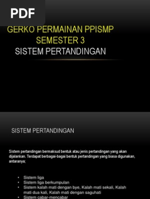 Penentuan bilangan perlawanan n 1 iaitu menolak 1 daripada jumlah pasukan yang mengambil bahagian. Jumlah pasukan peserta ialah 9 n n 1 9 9 1 2 2 9 x 8 2 72 2 36 perlawanan 5. Menghasilkan pemenang yang mutlak.