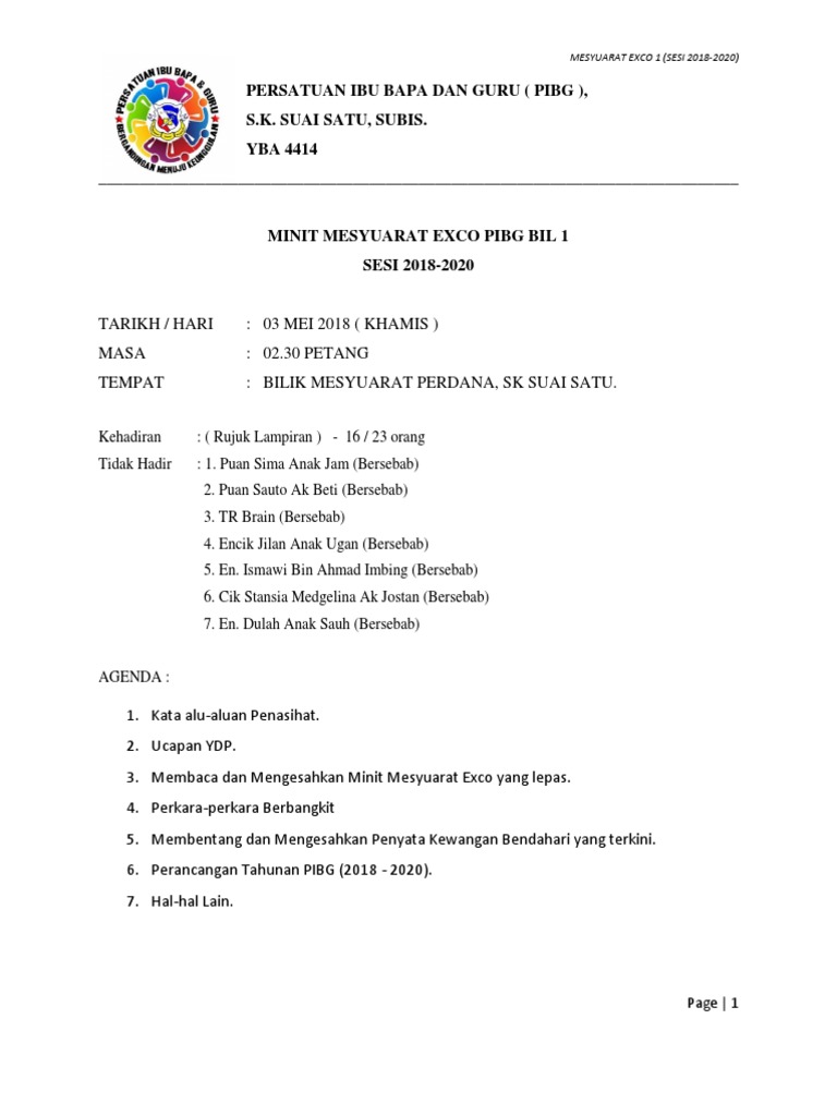 Contoh minit mesyuarat terkini 2018. En yusof bin kamaruddin guru besar 2. Untuk melihatkan sendiri contoh format minit mesyuarat terkini boleh semak pada pautan gambar di bawah ini contoh format terkini format tidak terlalu berbeza tidak kira anda mesyuarat anda adalah mesyuarat panatia subjek mesyuarat pibg meeting kokurikulum mesyuarat sukan mesyuarat unit bimbingan dan kaunseling ataupun untuk mesyuarat jawatankuasa kurikulum lebih kurang sama sahaja. Panduan ini juga boleh dirujuk sekiranya pengurusan mesyuarat dilaksanakan secara manual bagi agensi yang masih dalam fasa peralihan ke arah menggunakan sistem mymesyuarat sepenuhnya.
