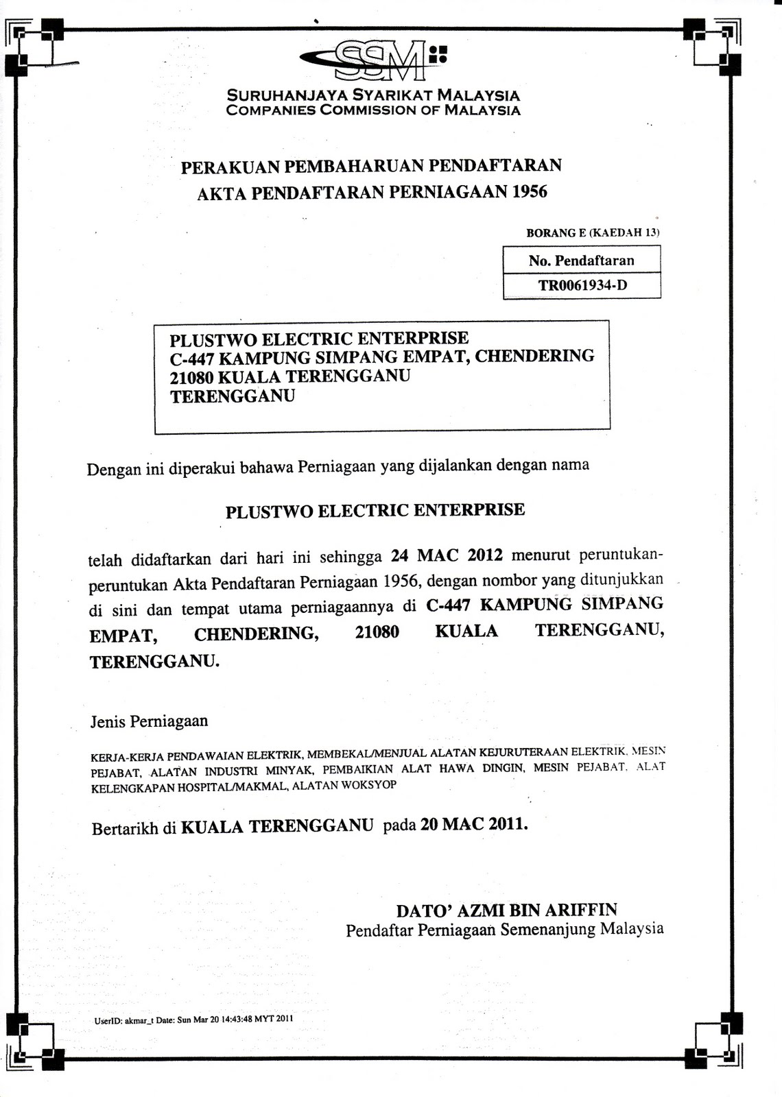 Pendaftaran syarikat perlu dibuat di bawah akta syarikat 1965. This entry was posted on mei 7 2012. Perniagaan milikan tunggal atau enterprise merupakan perniagaan yang dimiliki oleh seorang pemilik di bawah akta pendaftaran perniagaan 1956.