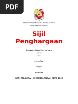 Contoh sijil penghargaan dan penyertaan 1. Anugerah seterusnya merupakan anugerah tokoh murid cemerlang dengan ini majlis dengan sukacitanya menjemput pn suarni bt ishak guru besar diiringi oleh penolong kanan 1 pn zurida untuk menyampaikan anugerah. Kerana pengurusi panel pemilih soalan.