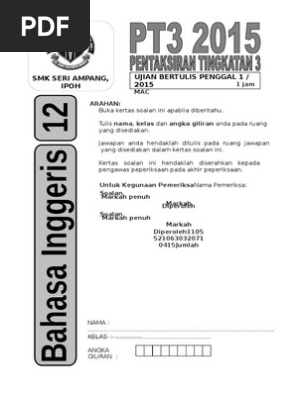 Contoh soalan bahasa inggeris pt3 2019. Bank kertas soalan peperiksaan percubaan pt3 2019 pt3 2018 pt3 2017 skema jawapan semua subjek. Mysumber akan kongsikan koleksi kertas soalan dan skema jawapan bagi peperiksaan percubaan pt3 tahun 2019 serta tahun 2018 untuk rujukan para pelajar. Format pt3 sains 55 8.