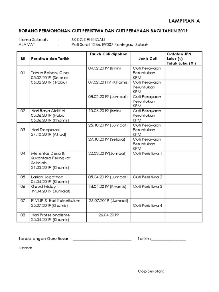 Cuti perayaan peruntukan kpm 2019. Takwim ini merupakan jadual persekolahan berserta cuti sekolah yang telah disusun mengikut kesesuaian bagi tahun 2019. Sebelum anda merujuk kepada cuti perayaan 2019 kpm di bawah adalah penting untuk anda menbuat semakan teliti takwim persekolahan yang dikeluarkan oleh kpm sebagai rujukan anda. Perayaan hari gawai dayak.