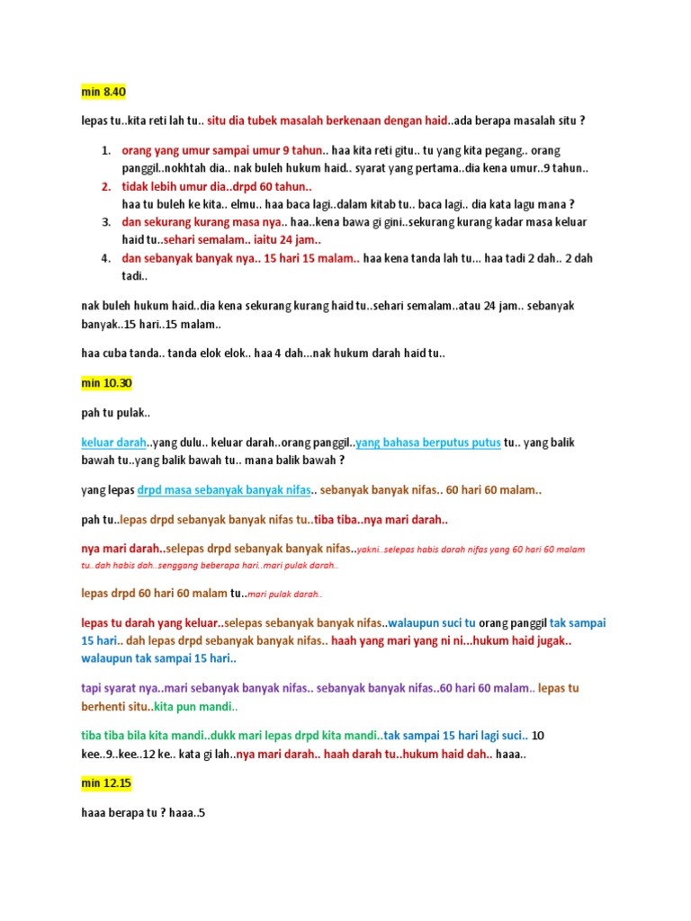 Oleh karenanya kapanpun darah itu berhenti walaupun baru berjalan 7 hari atau 10 hari atau bahkan lebih sebentar dari itu maka dia dihukumi suci. Hari 11 14 warna darah sama atau semakin muda ditambah adanya cairan berwarna putih atau putih kekuningan.