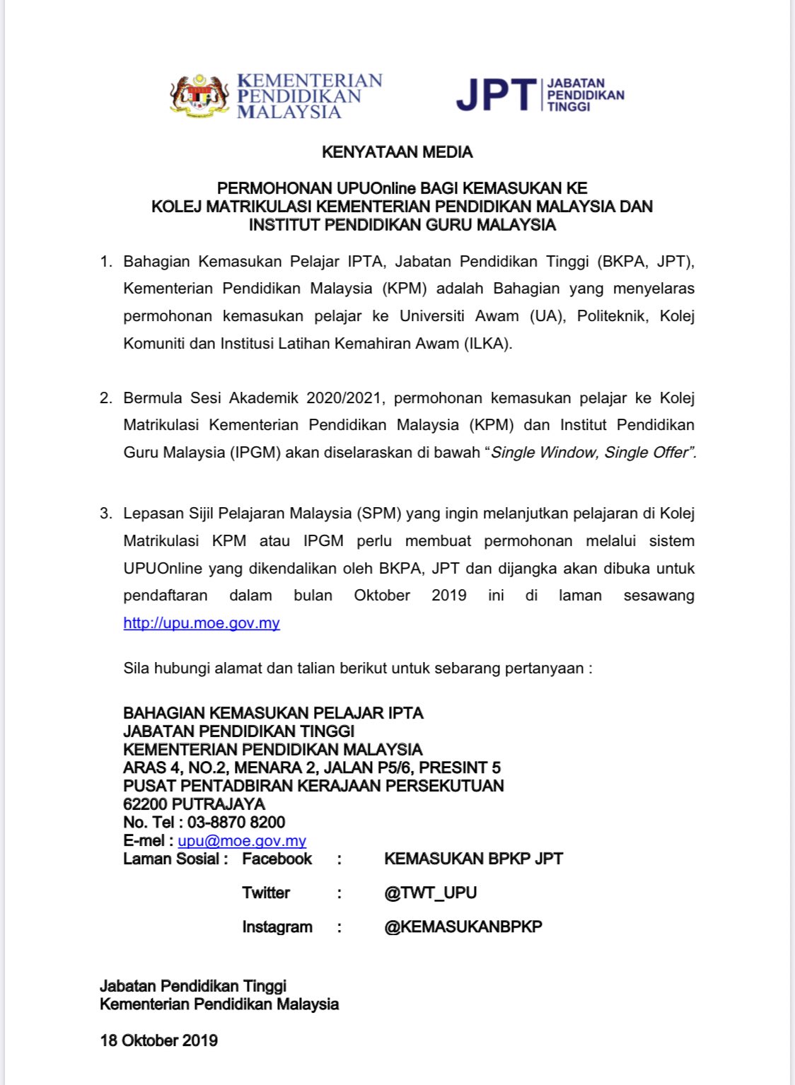 Permohonan melalui upu online bagi sesi julai 2020 tempoh mengemukakan permohonan menerusi upu online adalah mulai 24 februari 2020 jam 12 tengahari sehingga 31 mac 2020 jam 11 59 malam. Sijil fesyen dan pakaian 11399. Unit biasiswa bahagian biasiswa kementerian pendidikan tinggi aras 2 no.