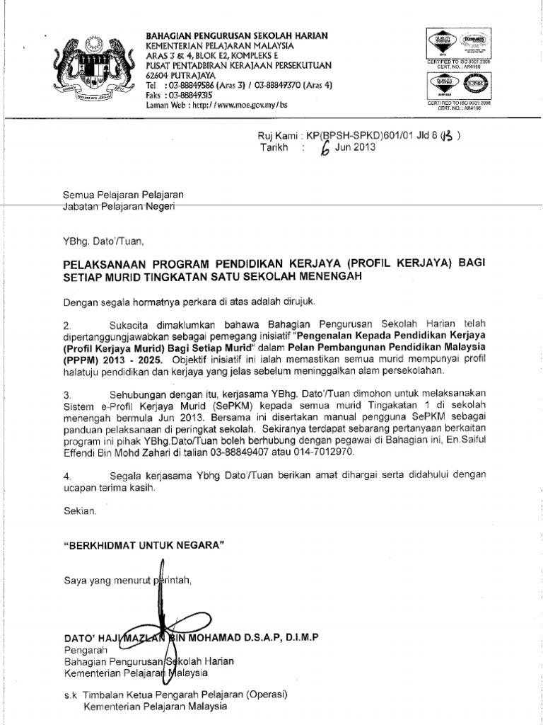 E profile kerjaya murid. Semua sekolah dikehendaki melaksanakan sistem e profil kerjaya murid sepkm bagi murid tingkatan 1 mulai jun 2013. Kongsi ke twitter kongsi ke facebook kongsi ke pinterest. Surat bpsh kpm dengan ruj.
