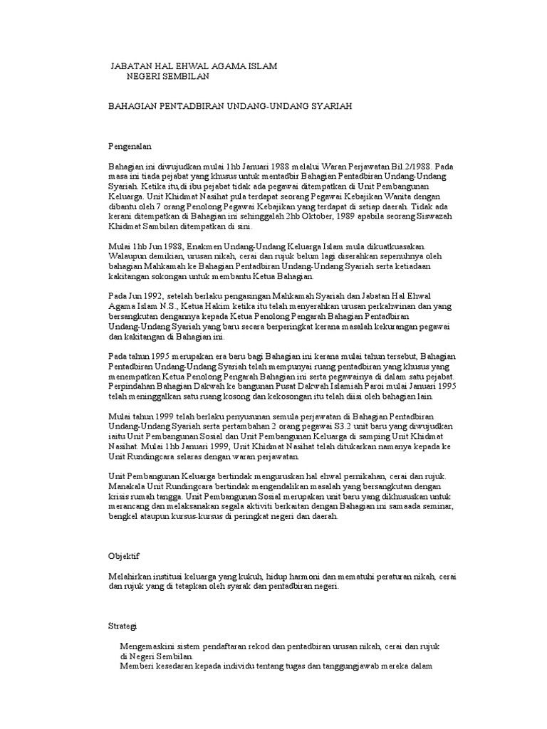 Islam negeri sembilan 2003 enakmen jenayah syariah negeri sembilan 1992 dan enakmen undang undang keluarga islam negeri islam 2003. Paroi 14 15 september 2020 bahagian undang undang keluarga islam jabatan hal ehwal agama islam negeri sembilan telah melaksanakan bengkel bacaan dan pemahaman enakmen undang undang keluarga islam negeri sembilan 2003 siri 1 2020 bagi pendaftar dan timbalan pendaftar perkahwinan perceraian dan ruju. Gambaran umum tentang akta membaharui undang.