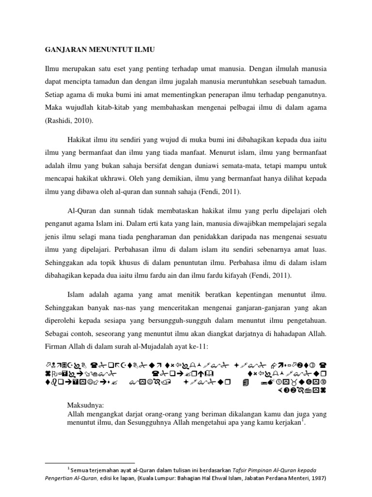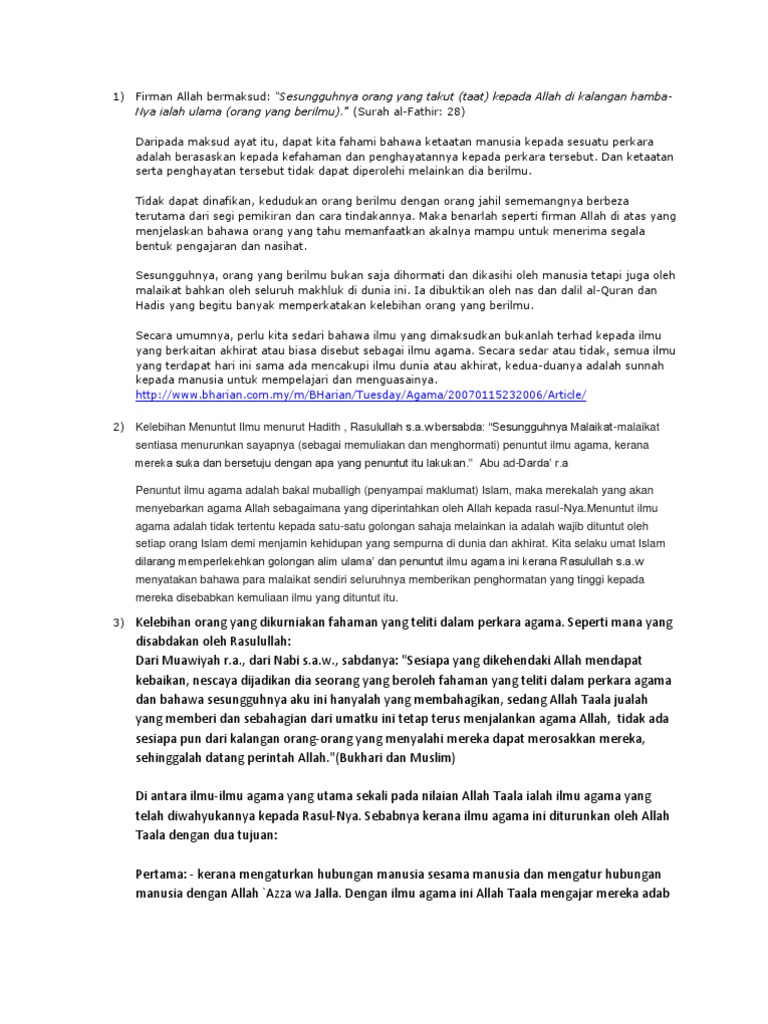 Berdasarkan soalan di atas menuntut ilmu merupakan kewajipan dan tuntutan terhadap setiap insan. 7 barangsiapa menuntut ilmu untuk mendapat keredhaan allah tetapi digunakannya untuk mendapat habuan dunia maka ia tidak akan mencium bau syurga pada hari qiamat. Hadis 1 kelebihan orang yang alim daripada abu amamah r a berkata.