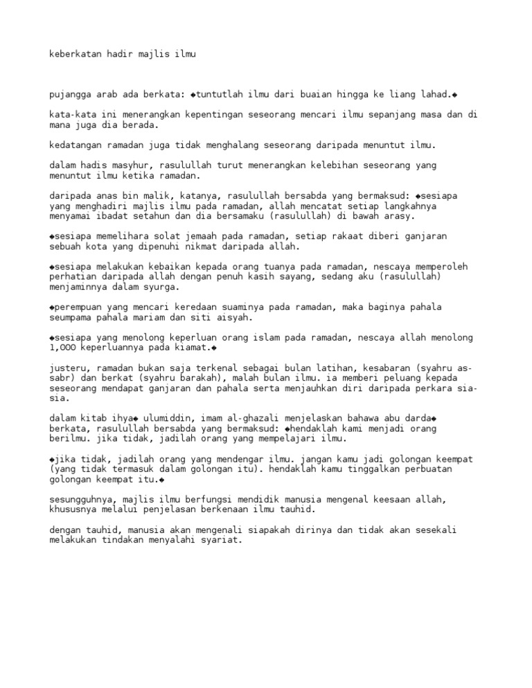 Dalil al qur an dan hadit mamfaat adab dan doanya tentang menuntut ilmu salah satu dari sekian banyak tanda datangnya hari kiamat adalah diangkatnya ilmu dari dunia maksudnya adalah bahwa suatu saat nanti ketika hari kiamat makin dekatakan datang suatu zaman yang kelompok masyarakatnyatidak peduli lagi pentingnya ilmu terlebih ilmu agama mereka seakan hidup bebas tanpa menghiraukan. Semoga kumpulan hadist menuntut ilmu di atas bisa bermanfaat dan menambah wawasan serta membuat kita semangat dalam menuntut ilmu sehingga bagi kita yang sedang menempuh berbagai macam jenjang pendidikan apapun tetap tidak lupa dalam mempelajari ilmu agama karena seperti yang kita ketahui sesuai hadist nabi diatas bahwa menuntut ilmu agama hukumnya wajib jika kita beragama islam. Riwayat abu daud dan ibnu majah.
