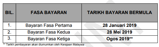 Pembayaran fasa 1 adalah berdasarkan pangkalan data bsh 2019.