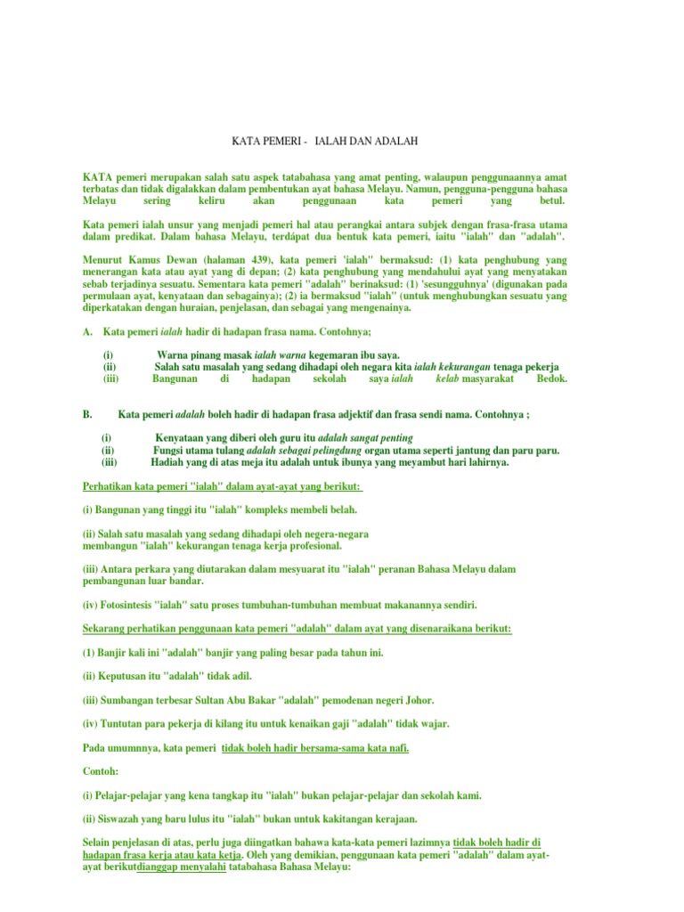 Latihan bahasa melayu kata pemeri by. Pilih kata pemeri yang sesuai. Kata pemeri adalah digunakan dalam dua keadaan iaitu di dalam ayat yang berstruktur fn fa frasa adjektif dan fn fsn frasa sendi nama.