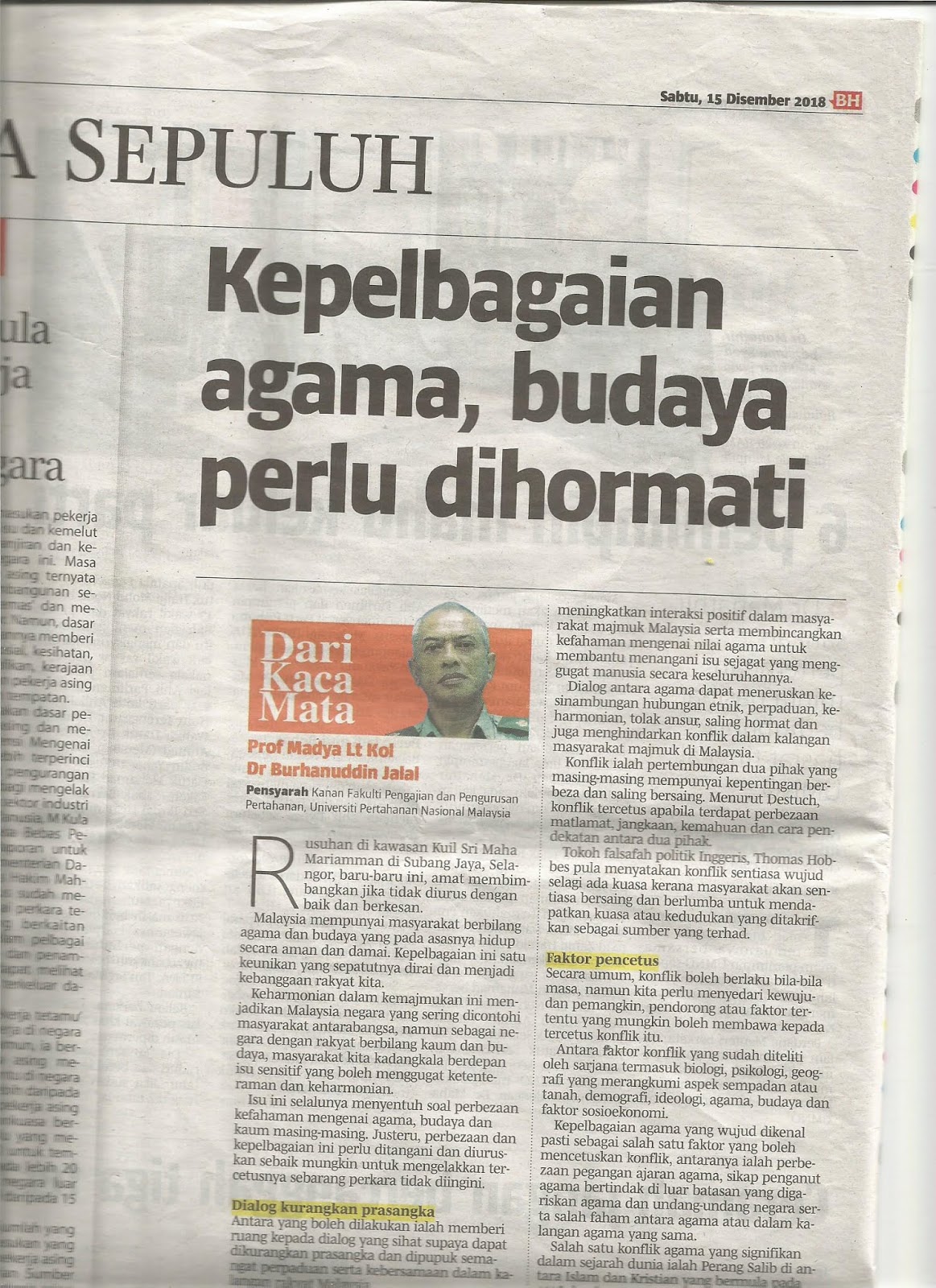 Setiap kepelbagaian kaum agama dan budaya harus terus diraikan dengan mengizinkan setiap bangsa kekal dengan jati diri masing masing. Malaysia mempunyai reputasi untuk menjadi sebuah negara berbilang budaya yang berjaya dengan hanya dua kejadian serius keganasan kaum dalam sejarah moden. K11 2 7 menilai kepentingan menghormati kepelbagaian agama bagi mewujudkan keharmonian.