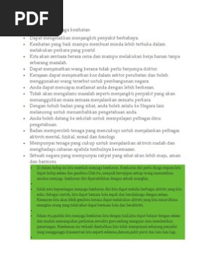 1 kira denyut nadi anda. Yang lebih penting adalah memastikan bahwa anda memiliki jantung yang sehat karena penyakit kardiovaskular meningkat pada kecepatan yang meningkat. Gaya hidup sihat merupakan suatu amalan kehidupan yang membina dimana ia dapat membawa kesan yang positif kepada seseorang individu institusi keluarga dan juga masyarakat.