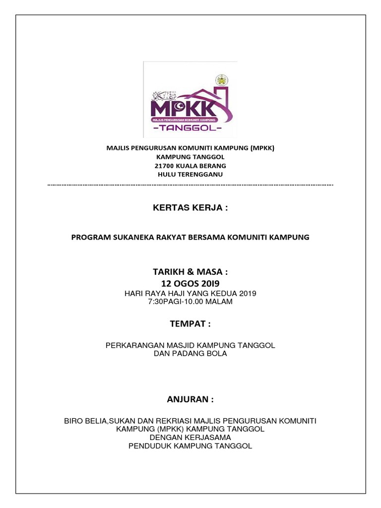 Tujuan tujuan kertas kerja ini adalah untuk memohon kelulusan bagi melaksanakan program karnival sukan rakyat yang akan dijalankan oleh jkkk padang marhum telok bakong hulu kg paloh belia 4b dan komuniti bestari mukim lambor pada tahun 2011. Academia edu is a platform for academics to share research papers. Kertas kerja sukan rakyat 3dm.