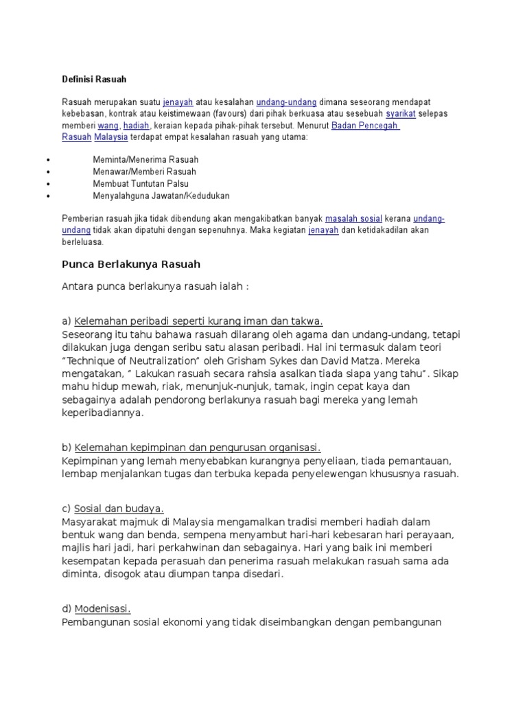 Keburukan rasuah kepada diri individu kesan rasuah dalam sukan kesan rasuah terhadap masyarakat dan negara karangan kesan rasuah terhadap masyarakat punca rasuah langkah mengatasi rasuah definisi rasuah kesan rasuah dan amalan tidak jujur dalam sukan. Akibatnya ia menimbulkan masalah lain seperti kemerosotan ekonomi pengabaian kepentingan masyarakat dan sebagainya. Memburukkan lagi taraf kemiskinan kerana sumber sumber yang telah ditetapkan bagi membantu rakyat miskin diselewengkan.