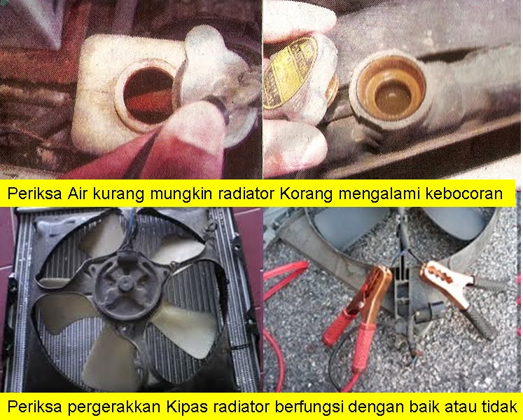 Kita tidak boleh mengabaikan kondisi di mana kipas radiator yang berhenti bekerja atau mati. Kipas radiator berfungsi untuk mengeluarkan haba dari radiator supaya suhu enjin dikekalkan. Lakukan perbaikan segera pada kipas radiator dengan cara membawa mobil anda tersebut ke bengkel atau dicoba untuk diperbaiki sendiri.
